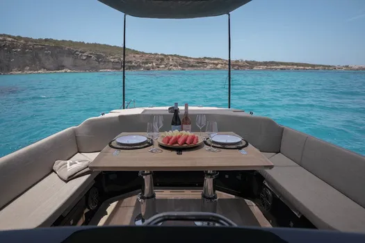 Dieses Boot wird mit Skipper inklusive vermietet, was den Tag von der Abfahrt bis zur Rückkehr deutlich entspannter macht. Die SACS 44 ist besonders attraktiv für Gäste, die einen modernen Charter mit sportlichen Linien, komfortablen Decksbereichen und Premium-Format für Fahrten zwischen Ibiza und Formentera suchen. Sie ist eine sehr gute Option für Boot mieten auf Ibiza mit guter Balance zwischen Design, Komfort und Attraktivität für einen privaten Tagescharter.