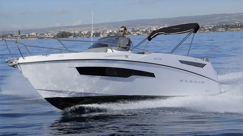 With 6.3 metres in length, a beam of 2.5 metres and capacity for up to 7 guests, the Karnic 652 offers stable navigation, practical deck space and a comfortable setup for swimming, relaxing and spending the day at sea. It can reach up to 40 knots, making it a very good option for agile coastal cruising. The boat also features 1 cabin.