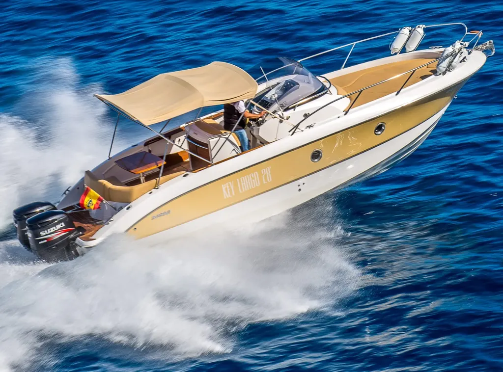 The Sessa Key Largo 28 Sole is a sporty open motor boat for private trips in Mallorca, ideal for guests looking for a practical, comfortable and flexible day at sea. Departing from Marina Cala d'Or, it offers capacity for up to 10 guests and stands out as a strong option for boat rental in Mallorca, private trips and coastal outings along the southeast coast of the island. With 8.93 metres in length and twin 250 HP Yamaha engines, it is well suited to agile navigation, sunbathing stops and enjoyable summer cruising.