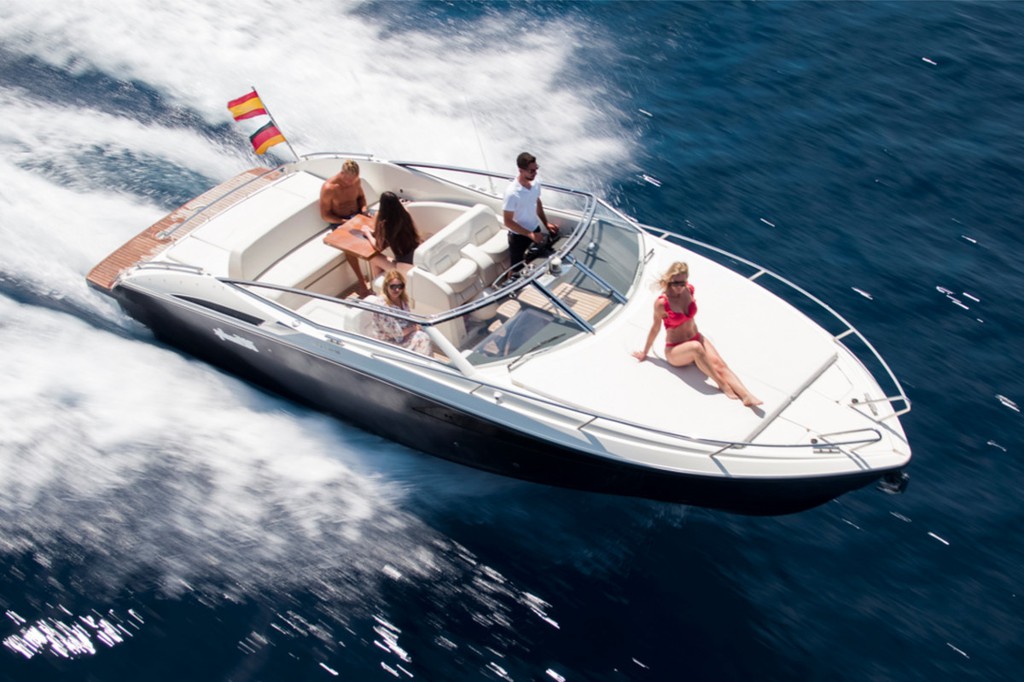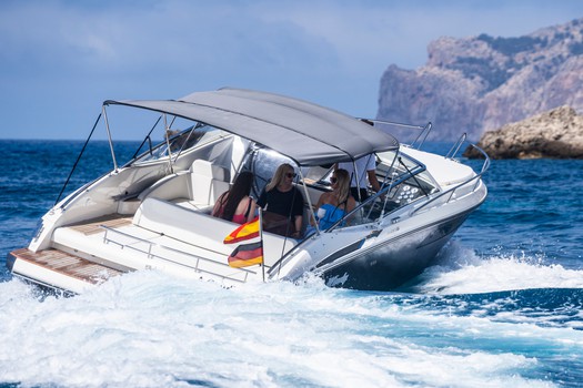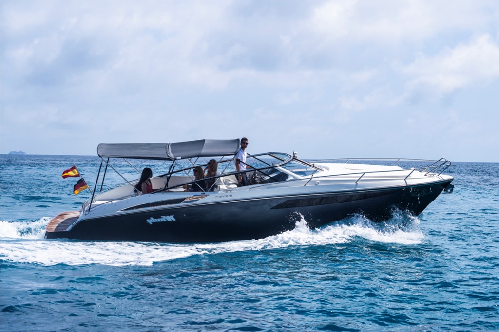 The Windy 31 Zonda is a premium Scandinavian sports boat designed for performance, comfort and style. Departing from Santa Ponsa in Mallorca, this elegant motorboat is perfect for private day charters along the spectacular southwest coast of the island.