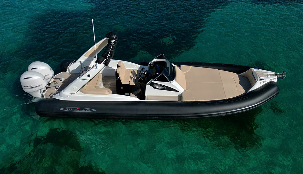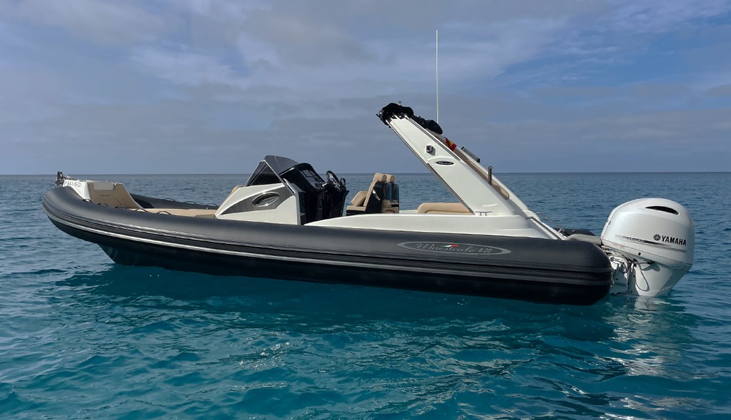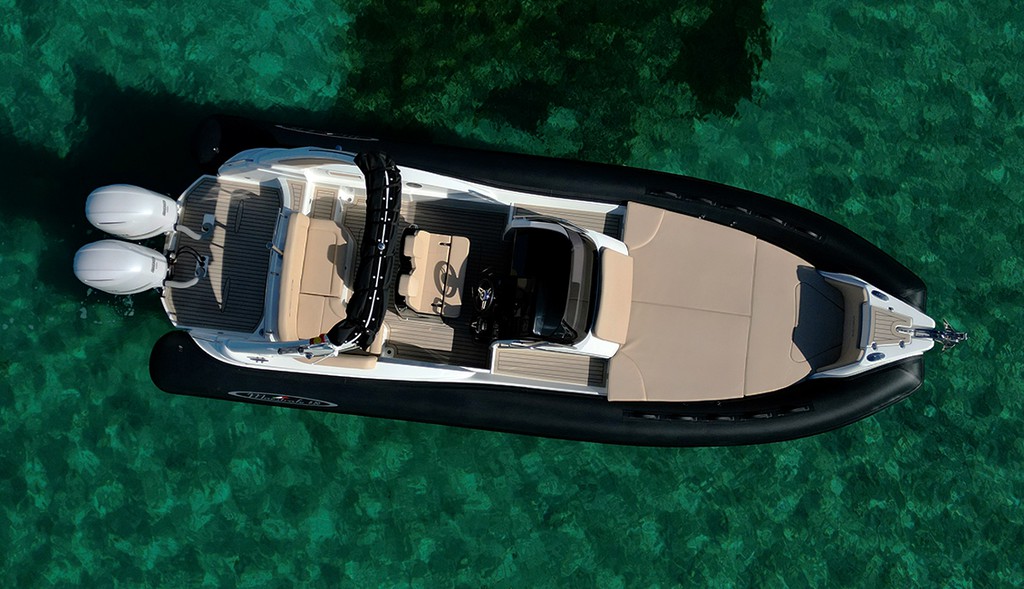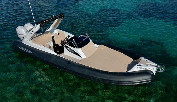 Embarcación semirrígida nueva de 2023 de 8,6 metros de eslora, con amplias zonas de descanso tanto en proa como en popa, muy recomendable para aquellos que quieran disfrutar de la gran comodidad que un barco de este tipo ofrece, muy superior a otras opciones.