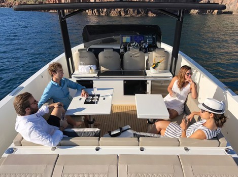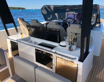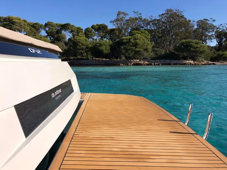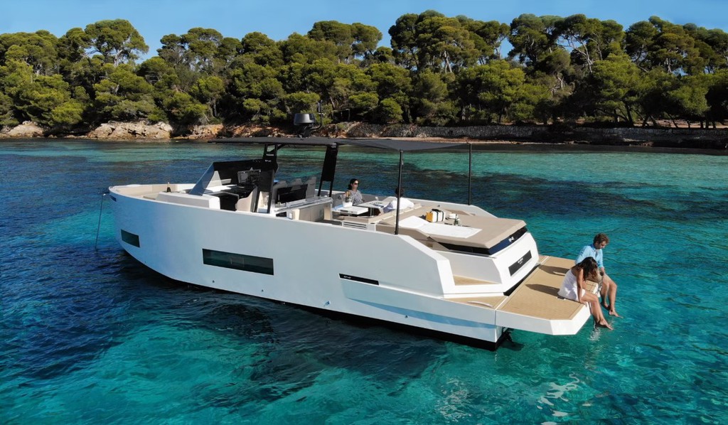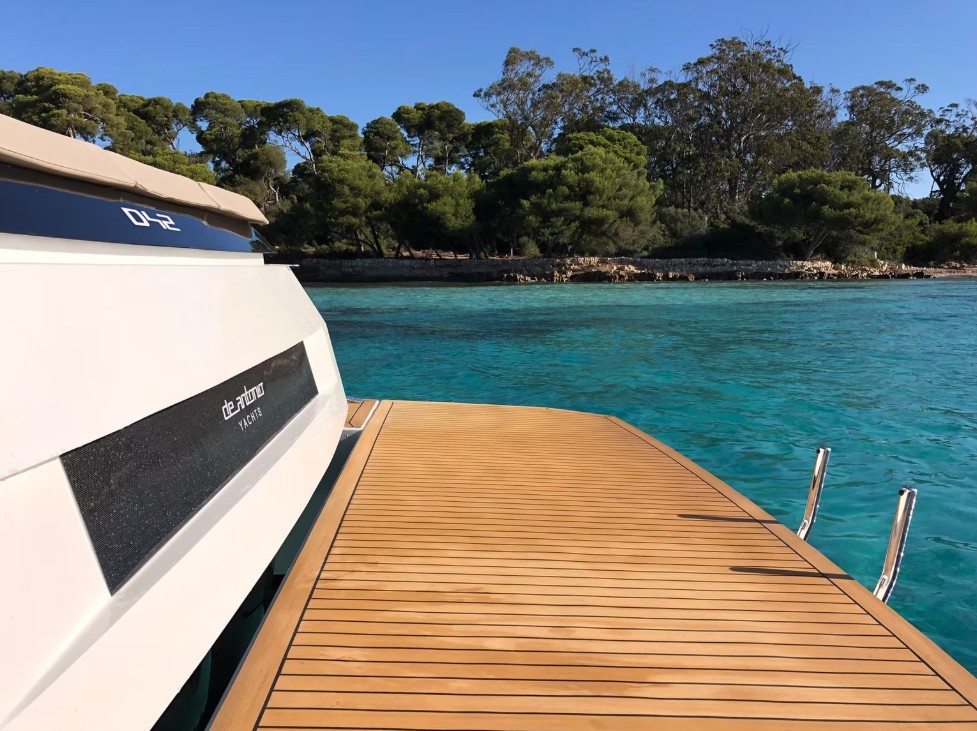 Elegancia náutica con gran solárium, espacios abiertos y navegación potente en la costa de Mallorca.