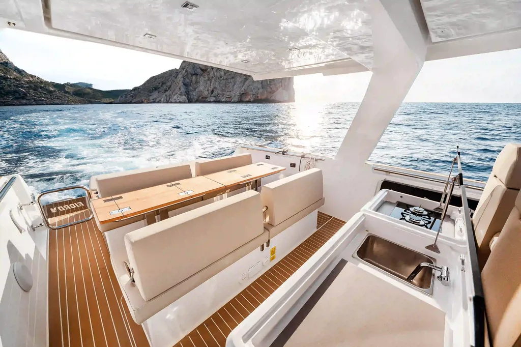 La Fjord 39 XL es una embarcación de lujo pensada para charters privados de día por la costa de Mallorca. Con salida desde Puerto de Pollença, este modelo se presenta como un yate premium para hasta 9 personas, con 12 metros / 39 pies de eslora, 1 cabina y 1 baño. La propia ficha la describe como una opción sofisticada para vivir experiencias privadas en la costa de Mallorca.