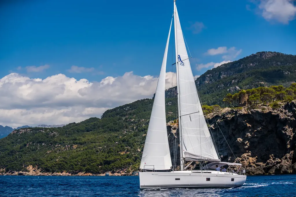 La Hanse 458 es un velero moderno pensado para disfrutar de charters privados relajados y elegantes por la costa de Mallorca. Con salida desde Puerto de Sóller, ofrece una experiencia premium de navegación que combina confort, interiores luminosos y muy buen rendimiento a vela. La ficha oficial del barco indica hasta 9 personas, 14 metros / 46 pies de eslora, 2 cabinas y 2 baños, lo que la convierte en una opción excelente para pasar un día privado en el mar con un plus de comodidad a bordo.