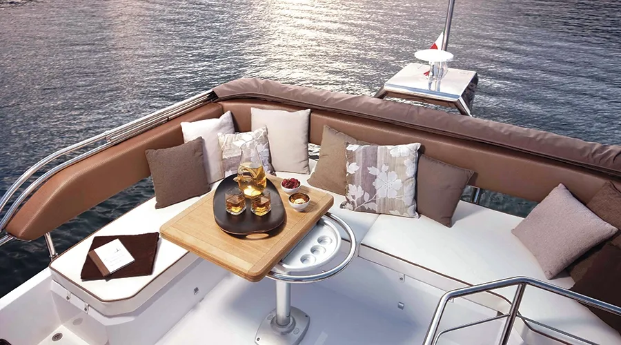 Este yate cuenta con patrón incluido, lo que permite disfrutar de la experiencia con total comodidad y sin preocupaciones. La Sessa Fly 40 es especialmente adecuada para quienes buscan una experiencia cuidada a bordo, con zonas lounge amplias, espacios de solárium y equipamiento práctico para una jornada completa en el mar. Para quienes buscan charter privado de yate en Mallorca, ofrece un equilibrio muy atractivo entre confort, privacidad y navegación costera.