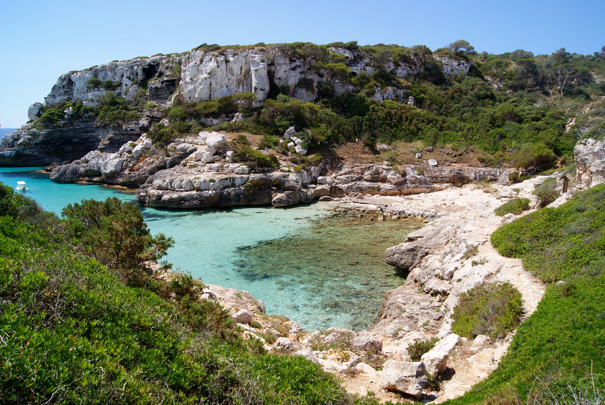 Desde Cala d’Or, la navegación se despliega hacia una de las costas más fragmentadas y atractivas del Mediterráneo balear. En pocos minutos se accede a enclaves como Cala Mondragó o Cala Mitjana, donde las aguas cristalinas y los fondos de arena clara crean condiciones ideales para fondeos prolongados y experiencias de mar más contemplativas. Esta proximidad reduce los tiempos de tránsito y permite una inmersión casi inmediata en el paisaje.
