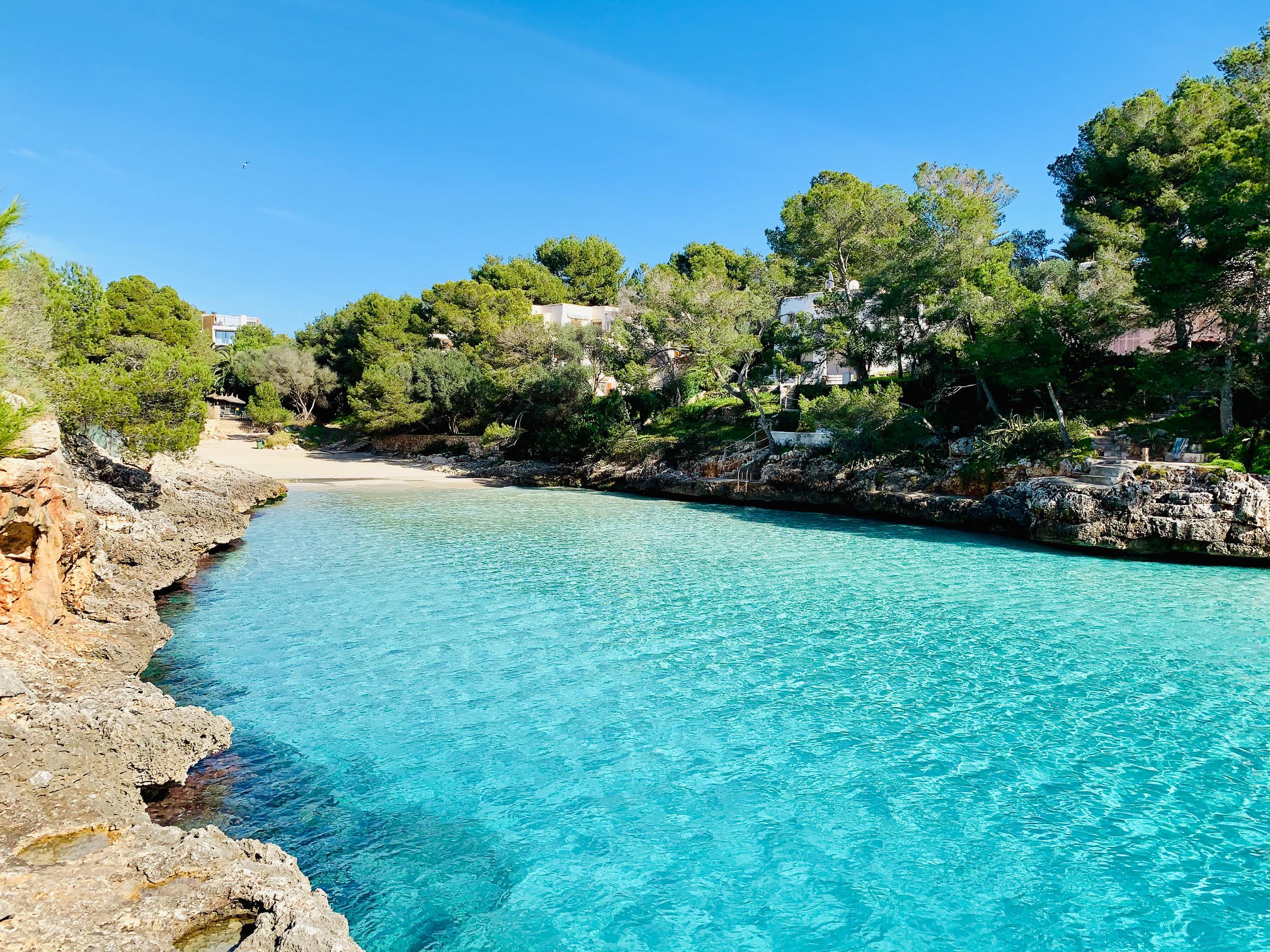 El entorno mantiene una estética limpia y contenida, con un desarrollo discreto alrededor que no interfiere en la lectura natural del paisaje. Es una escala breve dentro de la navegación por el este de Mallorca, ideal para baño y parada corta, donde la tranquilidad del agua y la proximidad de la costa crean una experiencia sencilla, directa y muy funcional dentro de una ruta de día.