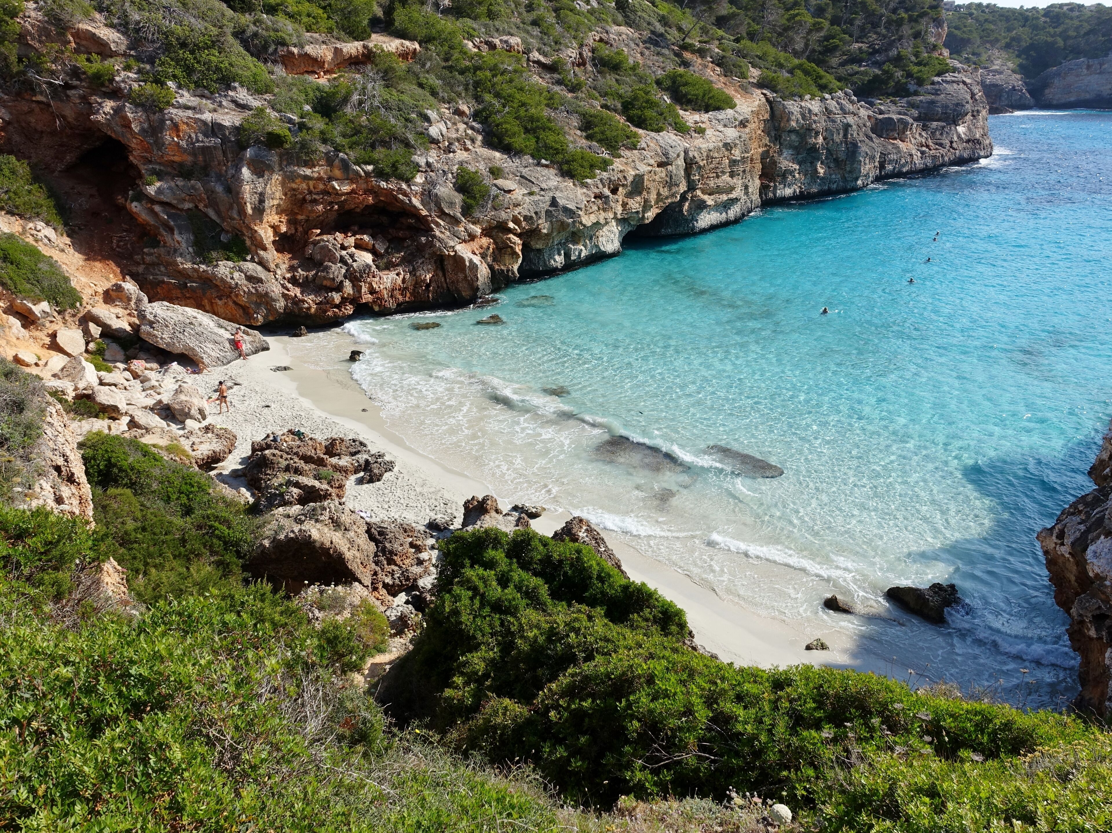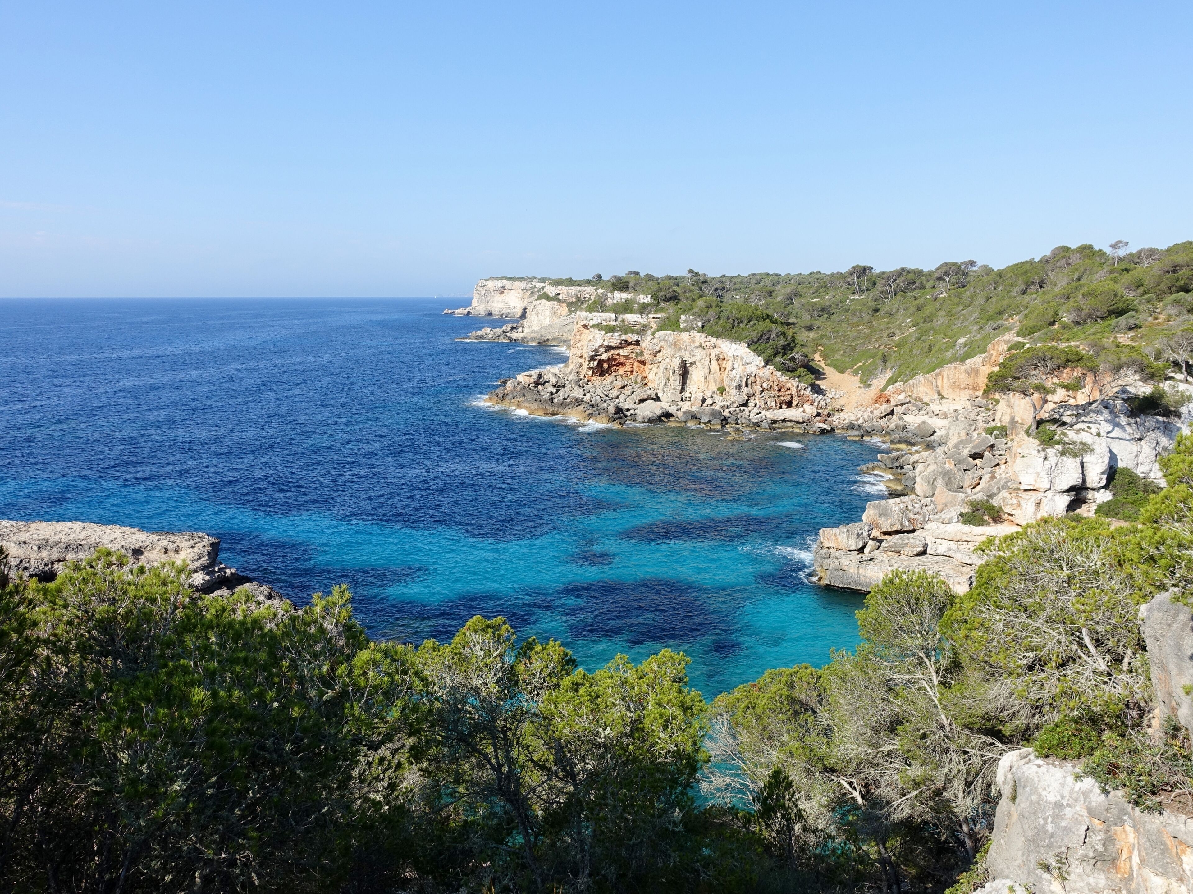 Desde Portocolom, la navegación se despliega hacia una costa de gran riqueza geográfica, donde se alternan acantilados, entradas de mar y calas de carácter más reservado. En pocos minutos se accede a enclaves como Cala Sa Nau o Cala Marçal, con aguas claras y condiciones óptimas para fondeo. Esta proximidad permite diseñar jornadas continuas, sin transiciones largas ni interrupciones innecesarias.