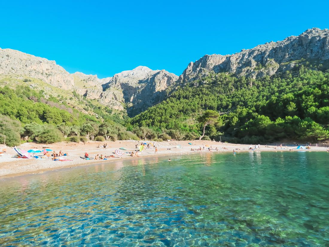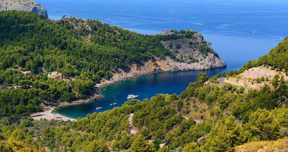 Cala Tuent se abre en la costa noroeste de Mallorca, enmarcada por la Serra de Tramuntana y alejada de cualquier desarrollo urbano significativo. A diferencia de otras calas de la zona, su acceso limitado ha preservado una atmósfera serena y casi intacta: una playa de cantos rodados y aguas profundas, rodeada de pinares y montañas que descienden suavemente hasta el mar. Desde la navegación, se percibe como un refugio discreto, donde la escala del paisaje se impone sin estridencias.