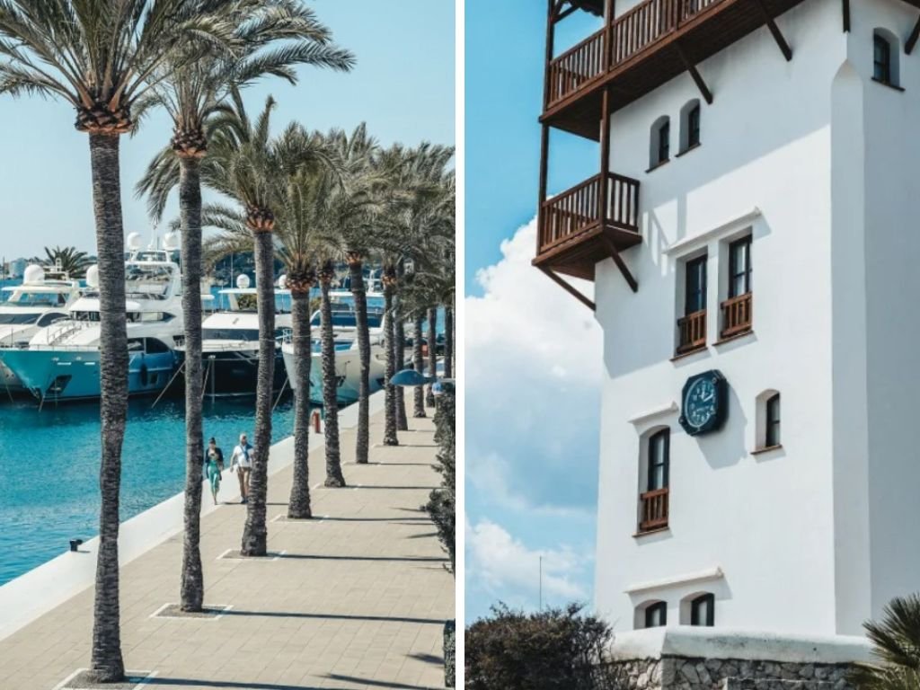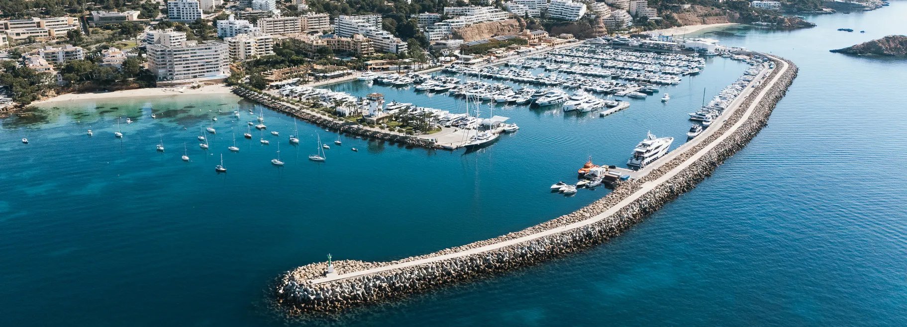La marina cuenta con 701 amarres para embarcaciones de entre 8 y 60 metros de eslora, lo que la convierte en un enclave clave para yates de lujo y charters exclusivos. Su ubicación estratégica permite acceder en pocos minutos a algunas de las mejores calas del suroeste de la isla, conocidas por sus aguas cristalinas de intenso azul turquesa y sus excelentes zonas de fondeo.