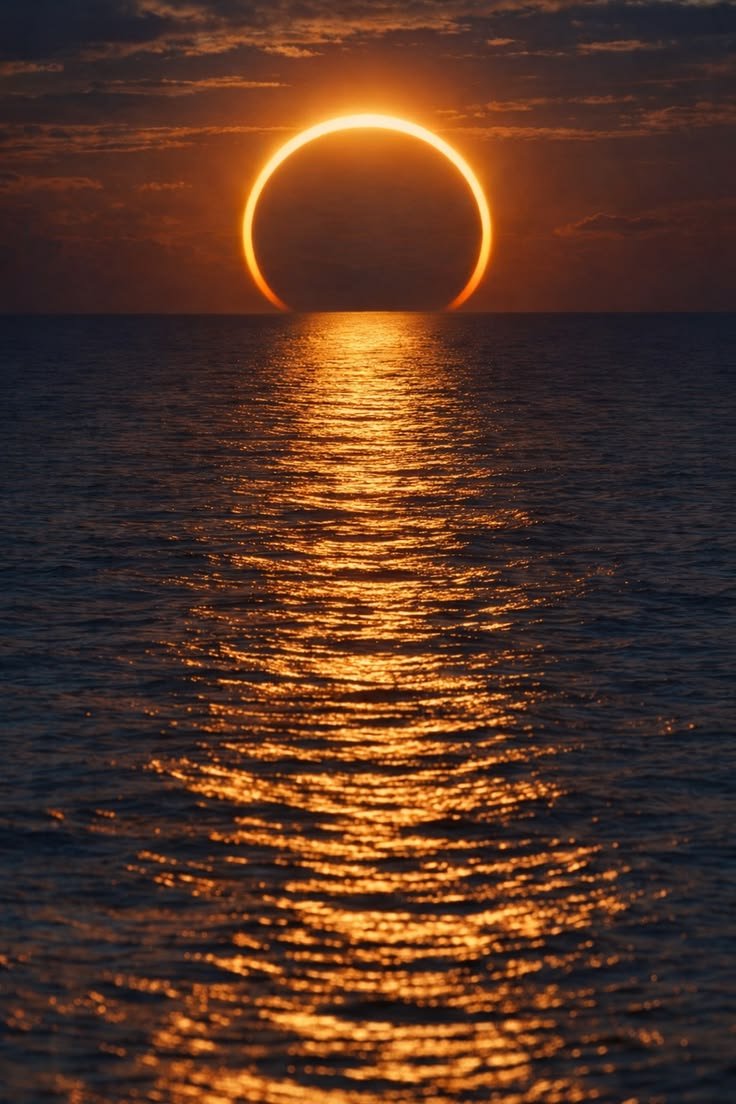 El instante de totalidad: el sol desaparece en el momento exacto del ocaso, transformando el Mediterráneo en una transición irrepetible entre día y noche.
