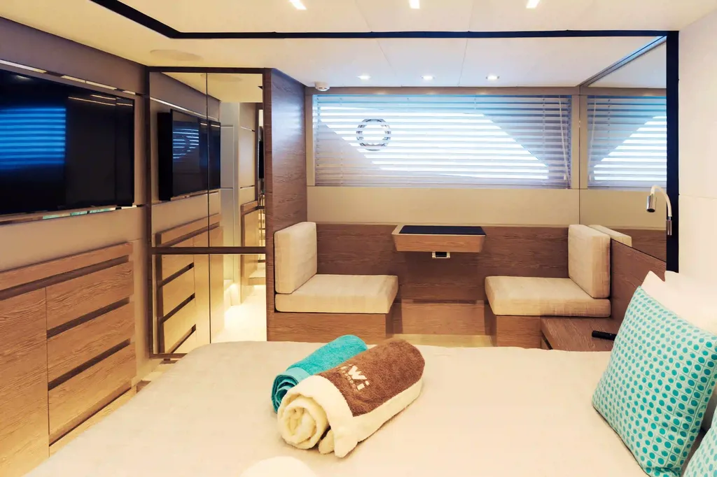 Ce yacht se distingue par l’association d’un design élégant et d’un équipement très complet pour naviguer confortablement à Majorque. Il comprend capitaine et hôtesse, ainsi qu’un Williams tender, du matériel de snorkeling, un kayak, un kneeboard et un Sublue, ce qui en fait une option particulièrement attractive pour les clients qui souhaitent combiner confort à bord et activités nautiques au cours de la journée.