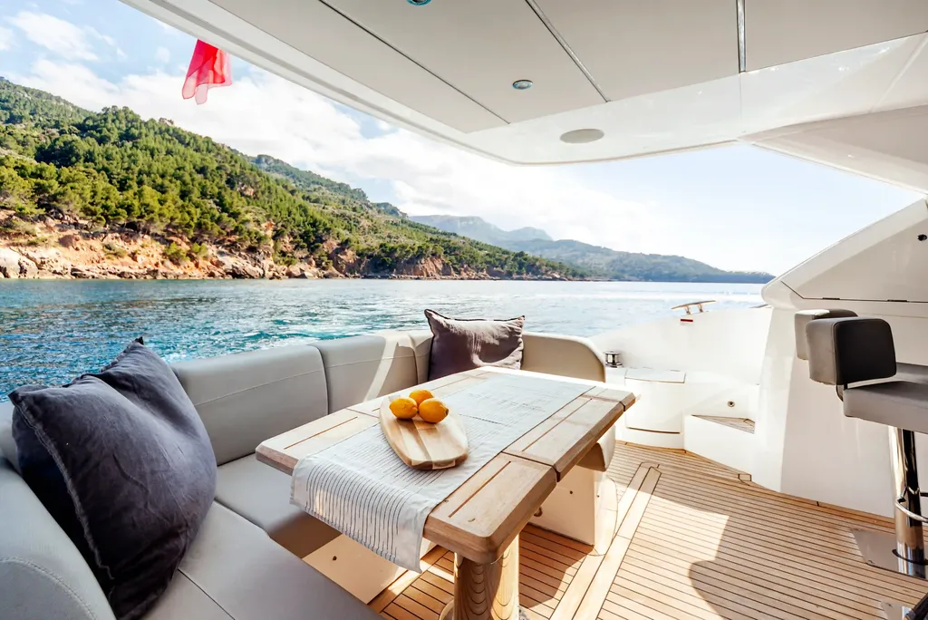 Ce yacht se distingue par ses lignes contemporaines, ses intérieurs soigneusement réalisés et un équilibre réussi entre style, confort et performance. Il dispose aussi d’un système de stabilisation Seakeeper, conçu pour réduire jusqu’à 95 % du roulis et offrir une expérience plus douce, plus stable et plus agréable en mer. La présence de capitaine et hôtesse apporte un niveau de service supérieur pendant toute la journée.